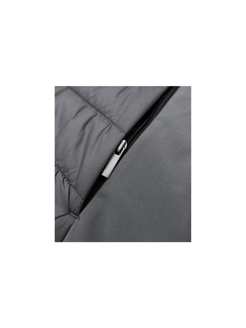 kombinace prošívaného a softshellového materiálu střih tvarovaný bočními díly celopropínací spirálový zip s krytkou brady boční kapsy se spirálovým zipem vnitřní náprsní kapsa na zip tvarovaný a mírně prodloužený zadní díl vstup pro branding v podšívce zadního díluDoplňkové parametry