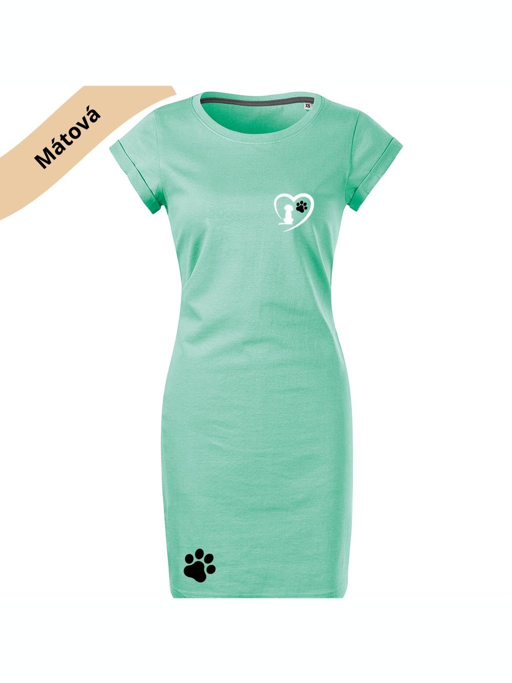 Dámské šaty s potiskem mátová vel. 2XL ušité v ČR bez kapes - miluji pejsky