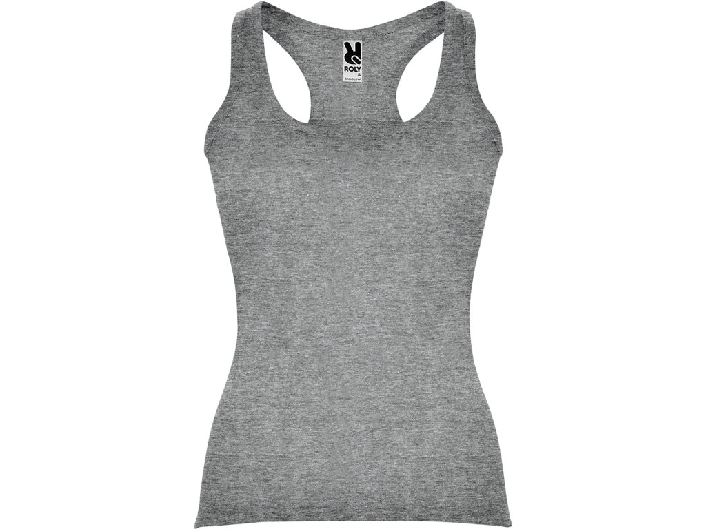 Přiléhavé dámské tílko s boxerskými ramínky v žebrovaném úpletu s bočními švy. Barva 58 (melange) - složení 85% bavlna/15% polyesterDoplňkové parametry