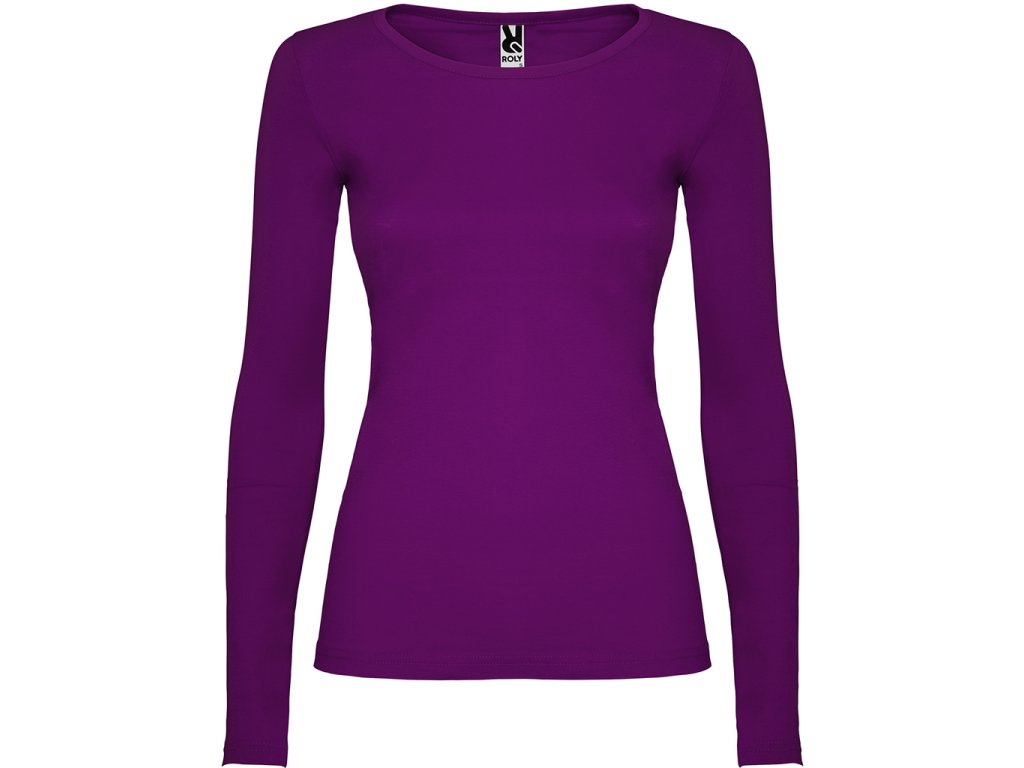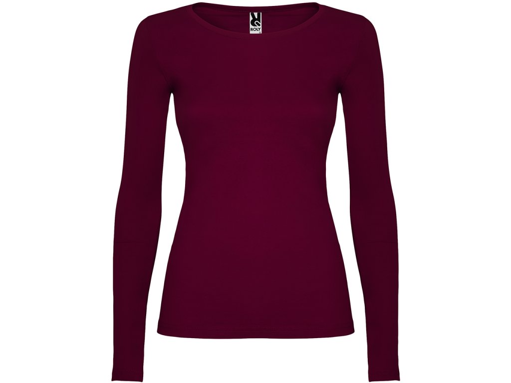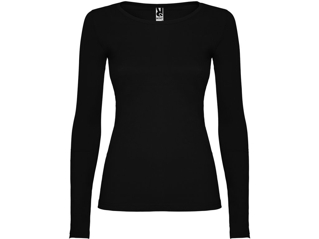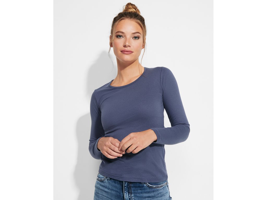 Polopřiléhavé dámské triko s dlouhým rukávem a kulatým výstřihem zakončeným jemným lemem. Rukávy bez manžet, boční švy.Doplňkové parametry