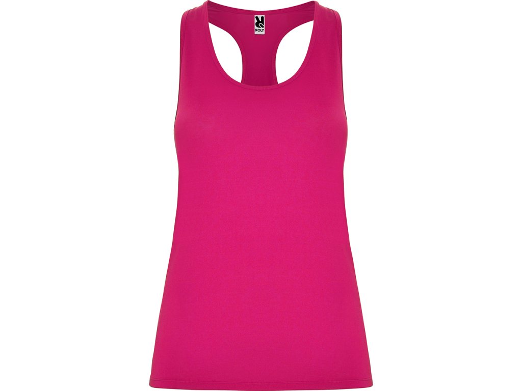Sportovní dámské/dívčí tílko s kulatým výstřihem a se zadním vykrojením v plaveckém stylu. Vyrobeno z polyesteru, na omak materiál působí jako bavlna. Přiléhavý střih.Doplňkové parametry