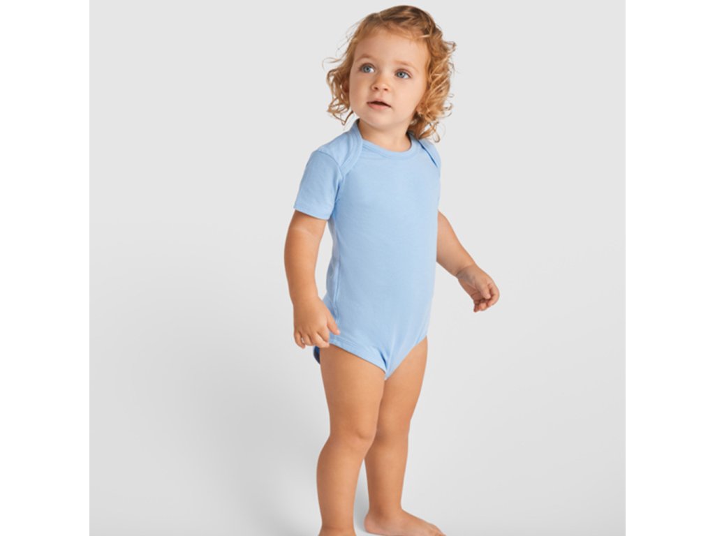 Kojenecké body s krátkým rukávem. 1x1 žebrovaný průkrčník a spodní část. Zapínaní na cvočky v rozkroku. Na ramínkách překřížení pro snadné oblékání.Doplňkové parametry