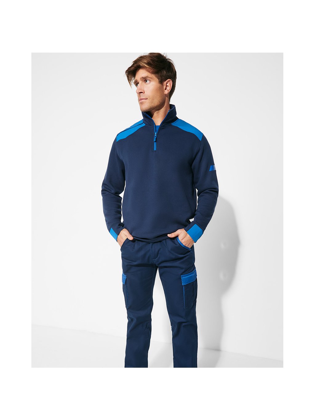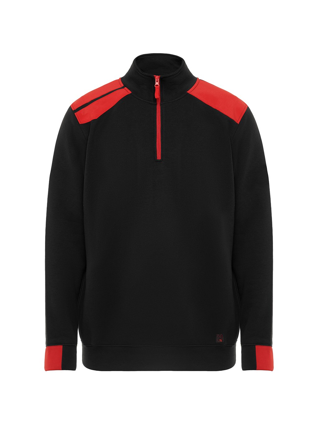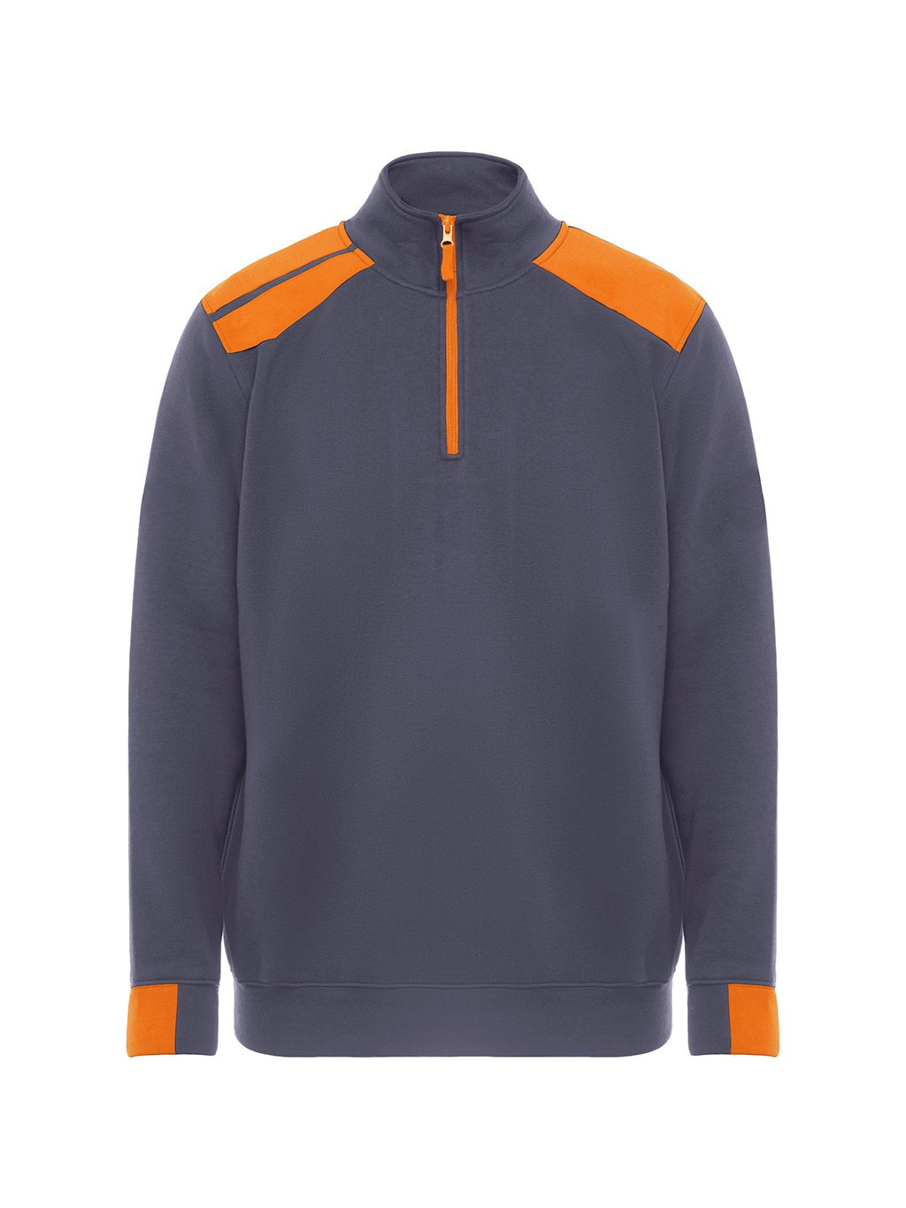 Pánská mikina s polovičním zipem, kombinací barev a vysokým límcem. Mikina má polovinu manžety a spodní lem ze žebrované látky 1x1, také má zasílené a kryté prošité na vnitřním límci. Rameny a detaily má v kontrastní barvě.Doplňkové parametry
