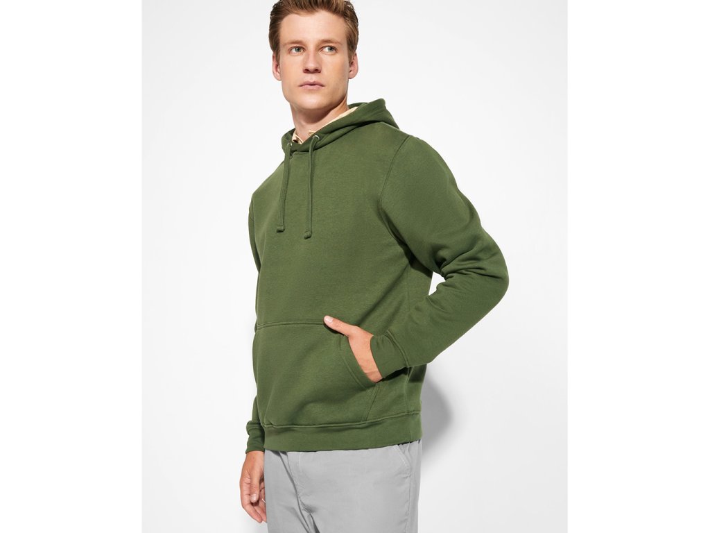 Pánská mikina s kapucí ve 2 různých provedeních- jednobarevná i 2barevná varianta. Klokaní kapsa. Vnitřní barva kapuce a šňůrky v kontrastní barvě u dvoubarevné varianty. Lemování na klokaní kapse. Manžety rukávů a spodní patent v žebrovaném úpletu 1x1.Dětské mikiny jsou z bezpečnostních důvodů dodávaný bez šňůrek.Doplňkové parametry