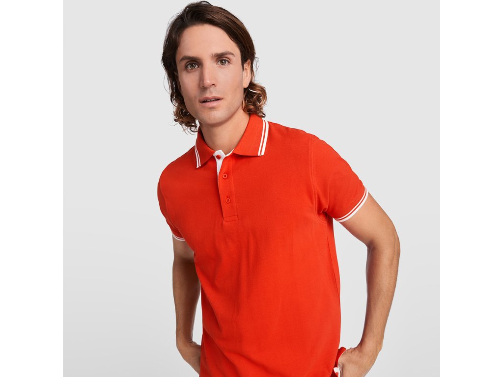 Pánská polokošile s límcem a zapínáním na tři knoflíčky v barvě. Límec a manžety z žebrovaného úpletu, zesílené lemovky límce. Vnitřní strana légy ve stejné barvě jako lemování límce a lemovka bočních rozparků.Doplňkové parametry