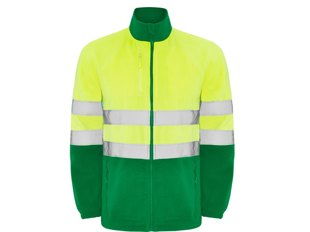 Fleecová mikina s vysokou viditelností. Mikina má celopropínací zip s ochranou brady, dva vodorovné reflexní pásy na hrudi a rukávech, dvě boční kapsy se zipem ve stejném odstínu. Náprsní kapsa na zip vpravo. Elastické manžety a spodní lem s vnitřní stahovací šňůrkou. Certifikace CE podle normy: EN ISO 13688:2013/A1:2021 a EN ISO 20471:2013/A1:2017. Třída II.Doplňkové parametry