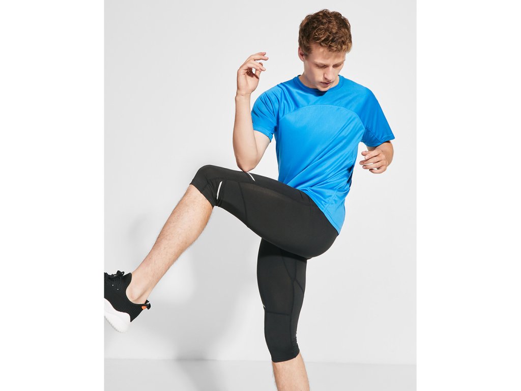 Pánské sportovní legíny do poloviny stehen. Elastický pas s vnitřní stahovací překříženou šňůrkou pro snadnější upevnění. Reflexní detaily. Vnější kapsa na zip na zadní straně.Doplňkové parametry
