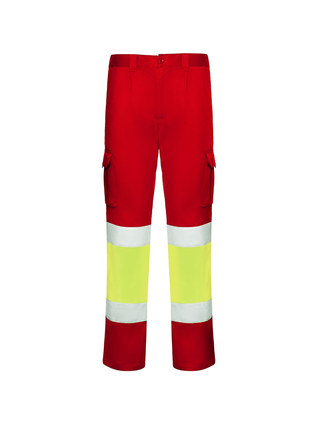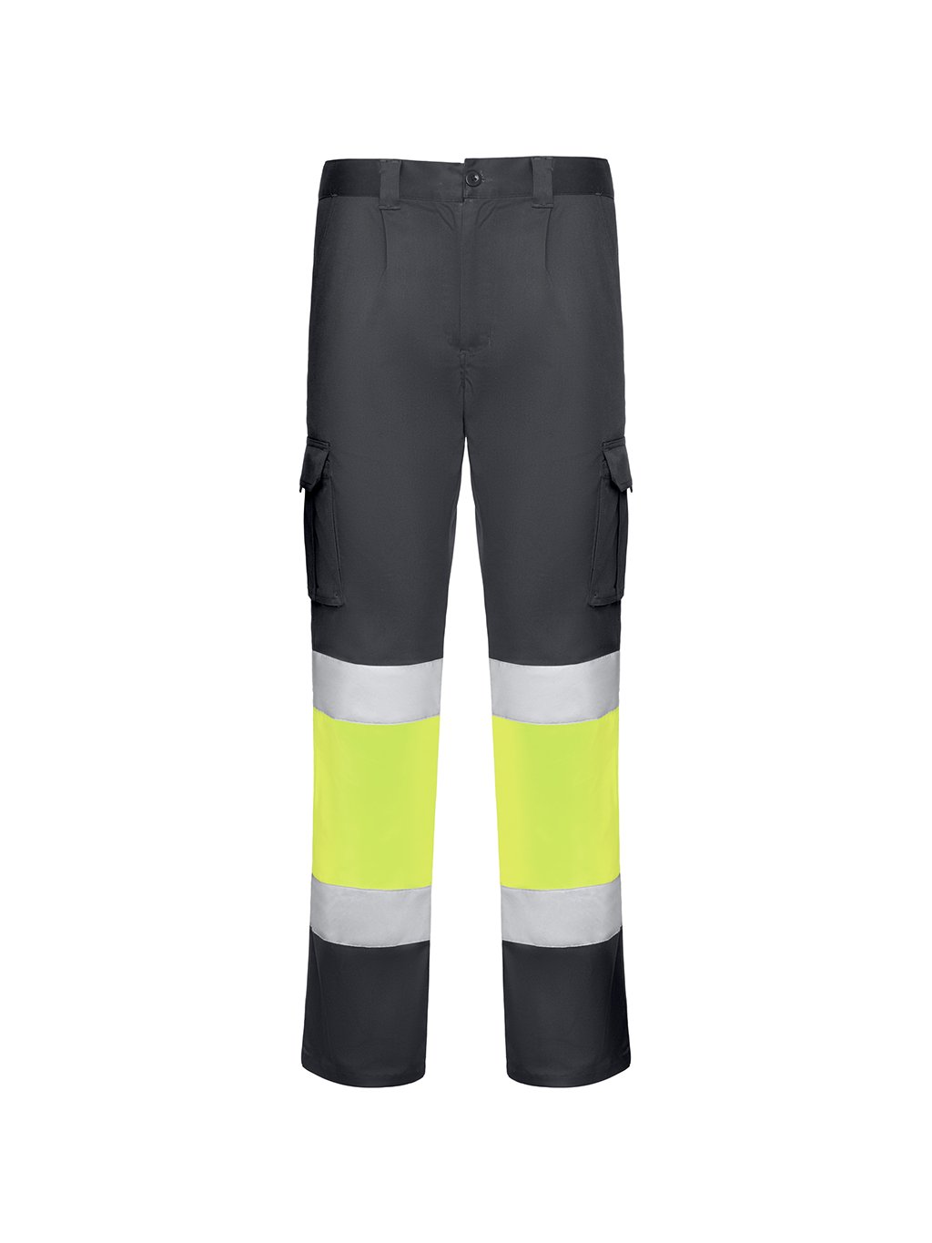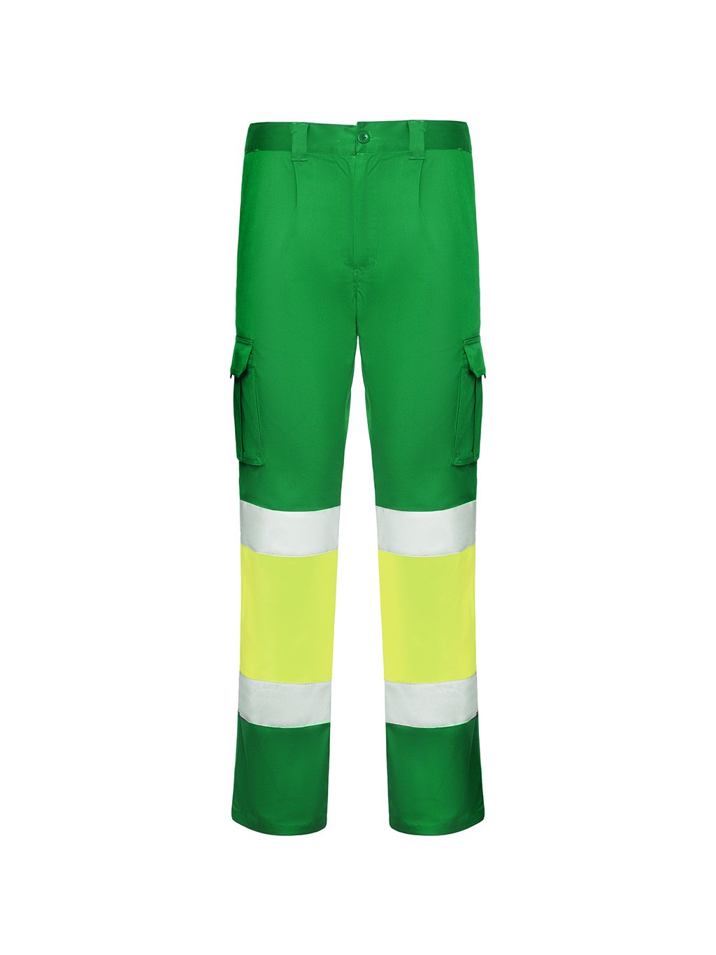 Pracovní dlouhé kalhoty s reflexními pruhy. Pohodlná a pružná tkanina. Nastavitelný elastický pas v zadní části. Kalhoty, které mají dvě přední kapsy, zadní a boční kapsy s klopou a zapínáním na suchý zip. Kombinace dvou barev s reflexními pruhy. Certifikace CE podle norem: EN ISO 13688:2013/A1:2021 a EN ISO 20471:2013/A1:2017. Třída I.Doplňkové parametry