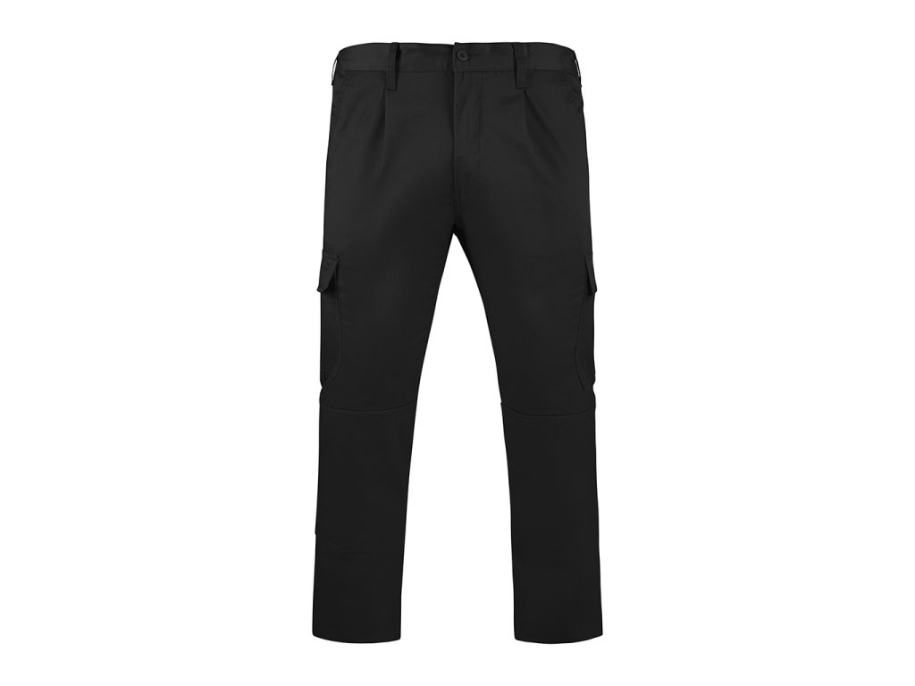 Pracovní kalhoty z vysoce odolné látky. Upravitelný obvod pasu pomocí elastické části na zadní straně. Jedna postranní a dvě zadní funkční kapsy kryté klopou se zapínáním na suchý zip. Pas s poutky na opasek.Doplňkové parametry