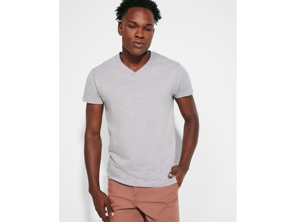 Pánské tričko s čtyřvrstvým "V" průkrčníkem. Zpevněné skryté švy na průkrčníku a na ramenou. Barva 58 (melange) - složení 85% bavlna/15% polyesterDoplňkové parametry