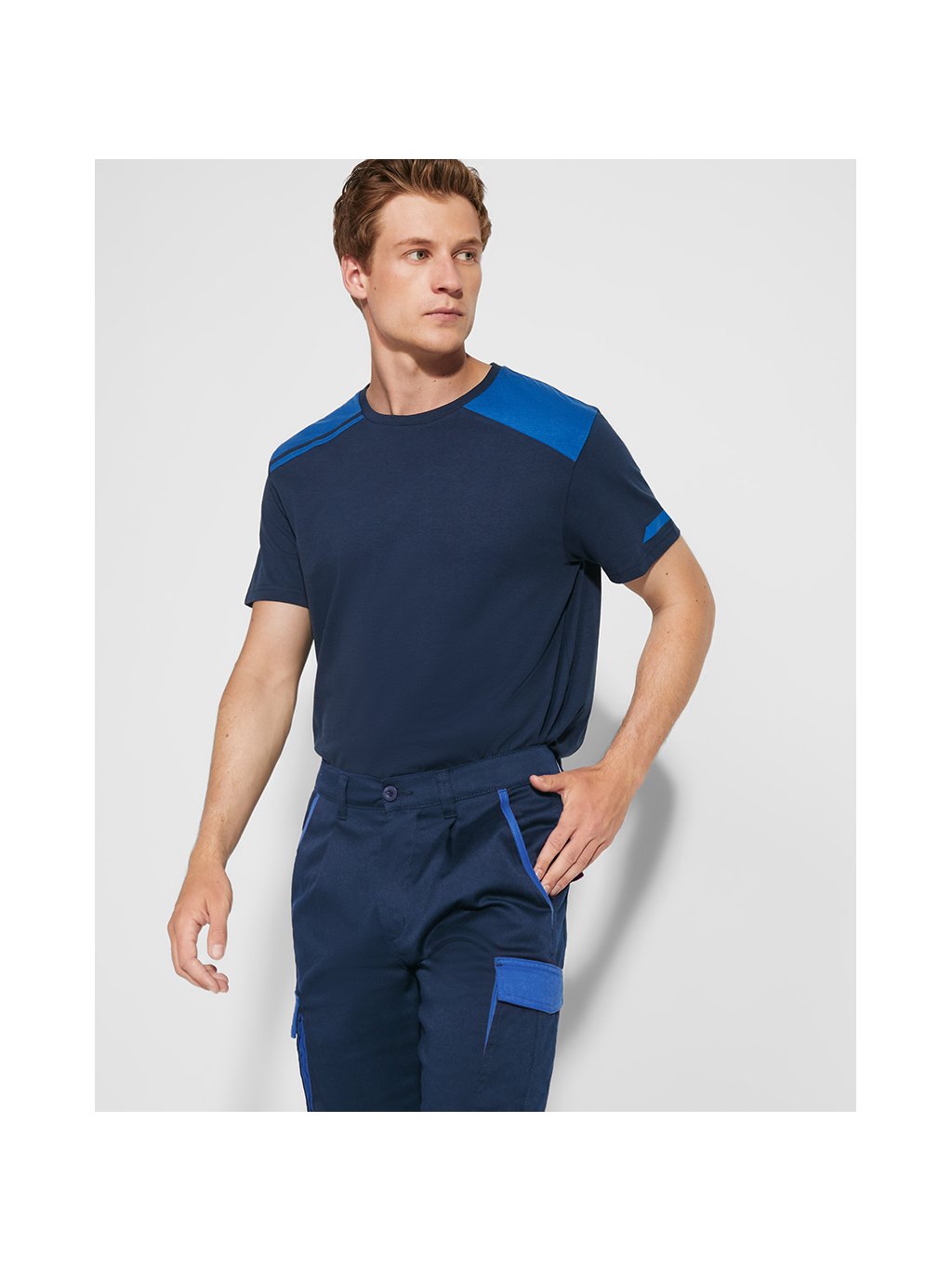 Pracovní šortky z pohodlné elastické tkaniny. Šortky mají poutka na opasek a klopy, záhyby a lemy v kontrastní barvě. Dále disponují elastickým zadním pasem vzadu. Šortky také mají dvě přední kapsy, dvě zadní kapy s klopou a zapínáním na suchý zip a dvě skládané boční kapsy s klopou a zapínáním na suchý zip.Doplňkové parametry