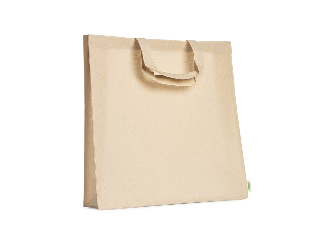 Taška ze 100% organické bavlny s klínem a zesílenými krátkými uchy o délce 35 cm. 120 g/m².Doplňkové parametry