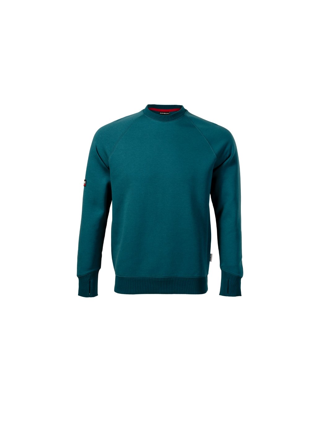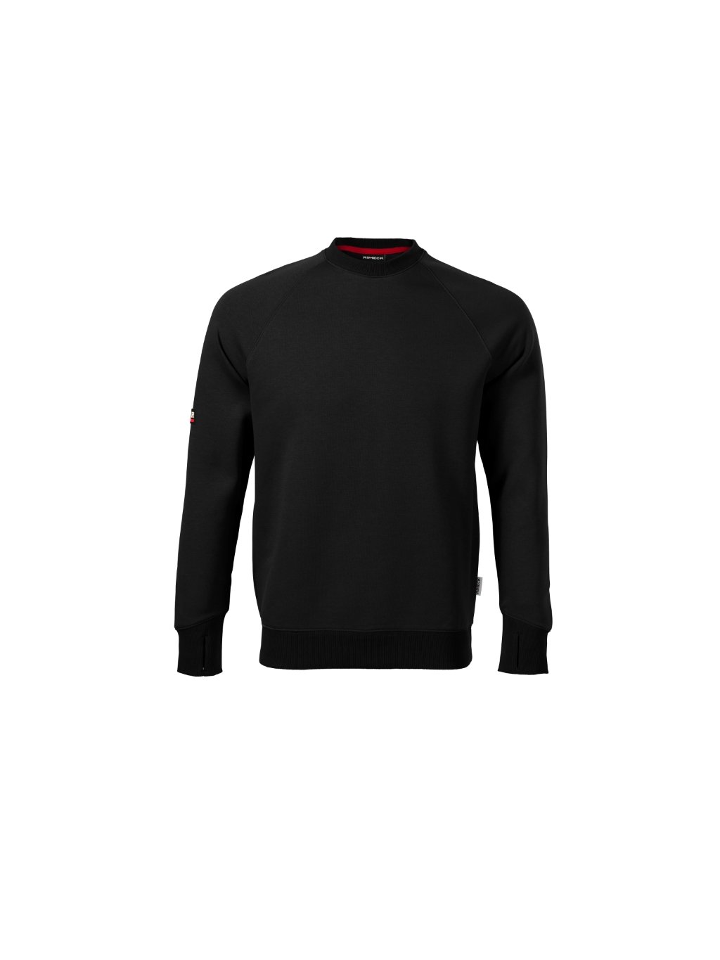 rovný střih s bočními švy vnitřní část průkrčníku začištěna kontrastní páskou raglánové rukávy s dvojitým prošitím dolní lem, manžety a průkrčník z žebrového úpletu 2:2 s 5 % elastanu manžety s otvorem pro palec kontrastní prvkyDoplňkové parametry
