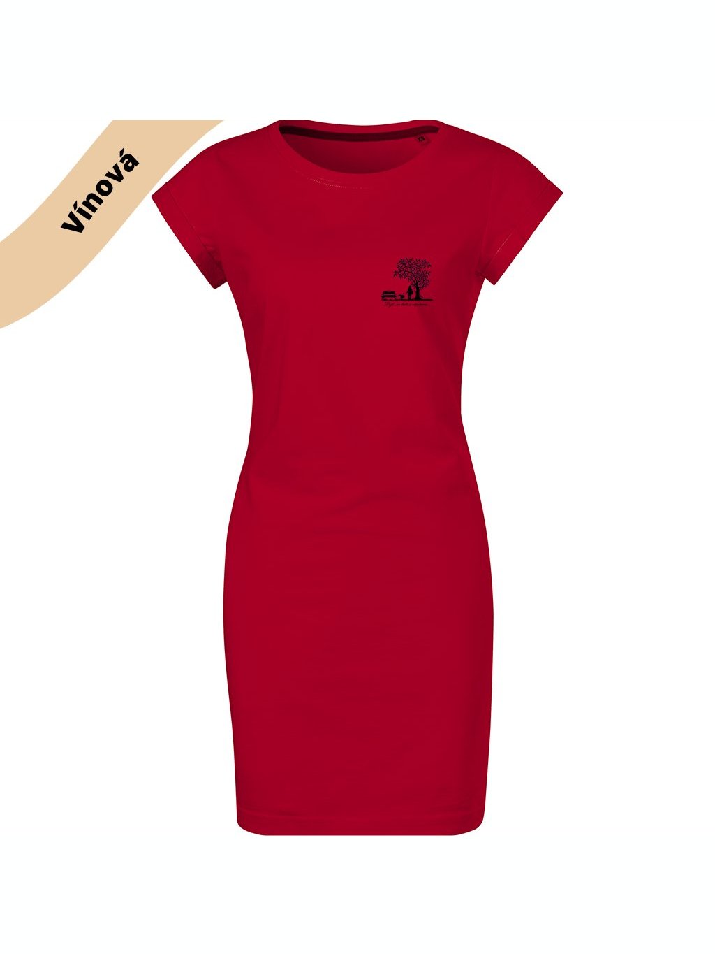 VÝPRODEJ/ Dámské šaty s potiskem vínové vel.4XL ušité v ČR bez kapes - Odpočineme si starší