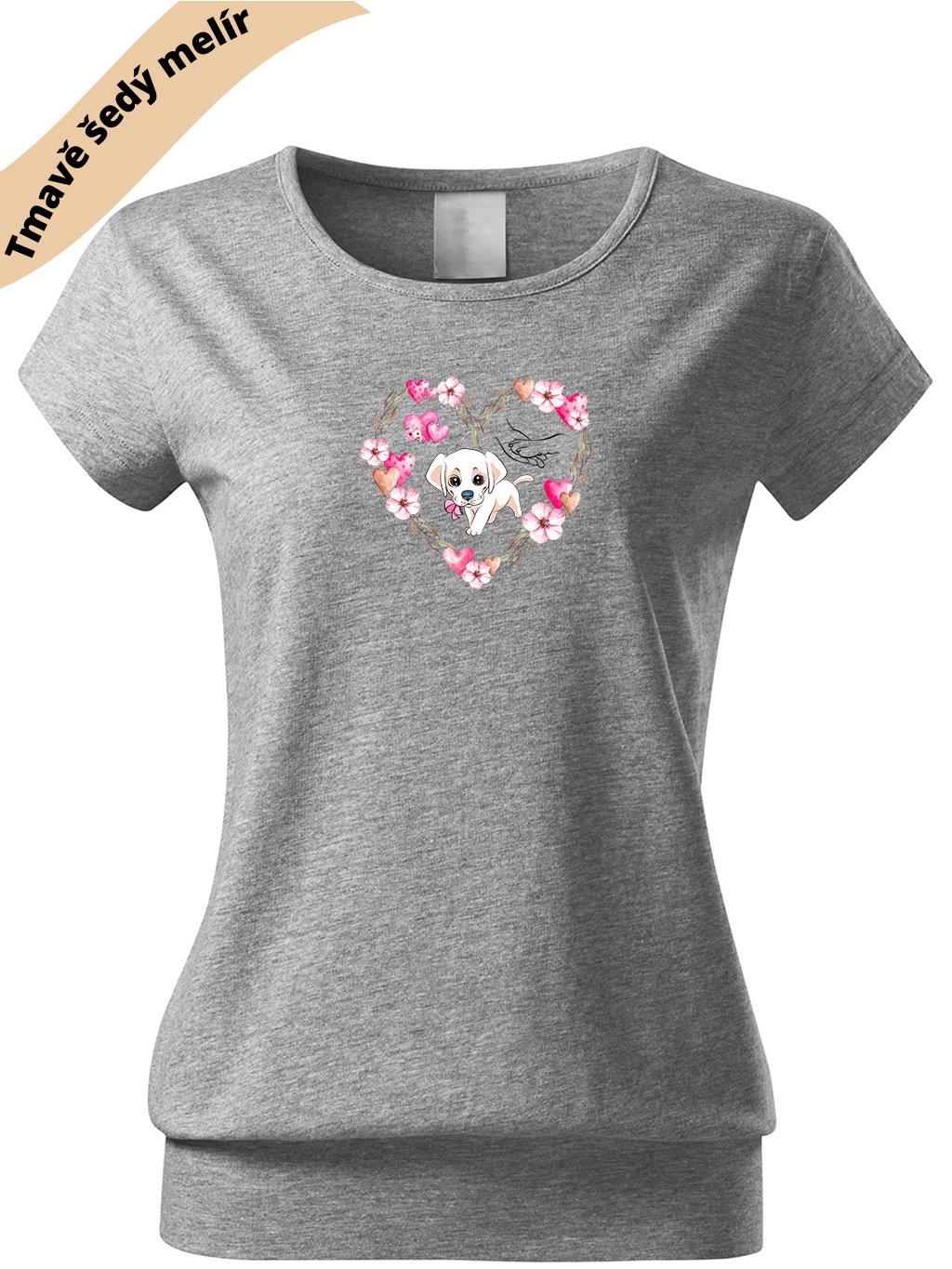 VÝPRODEJ/ Dámské volné triko s DTF potiskem šedý melír vel. 2XL - Miluji pejsky II