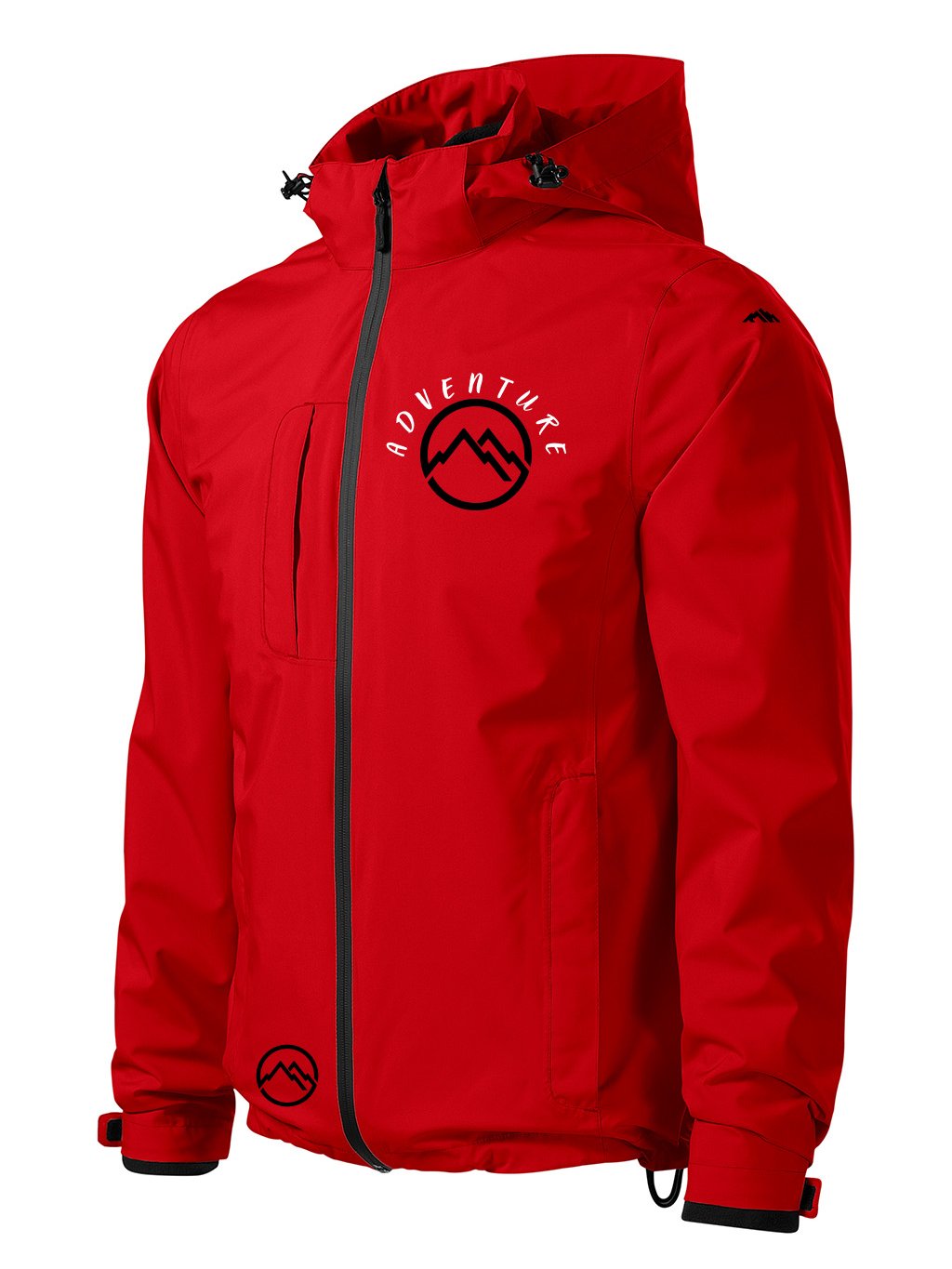 VÝPRODEJ/ Pánská zimní bunda s kapucí a potiskem červená vel. M - Adventure